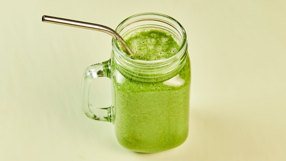mit Ananas, Erbsenproteinpellets, Spinat, Bananen, Mango und Chiasamen