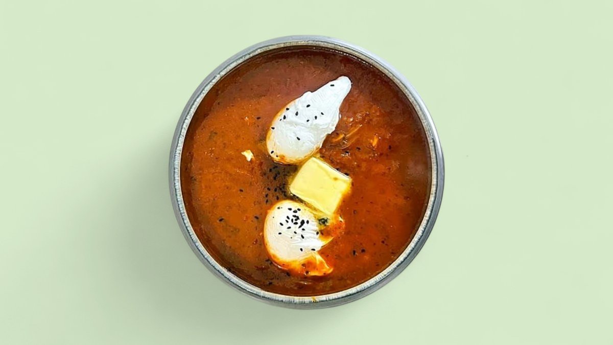 mit Tomatensoße, Chili, Kumin, Paprika, Zwiebeln, Kartoffeln, Sucuk und Sauerteig Brot