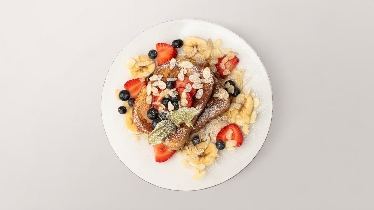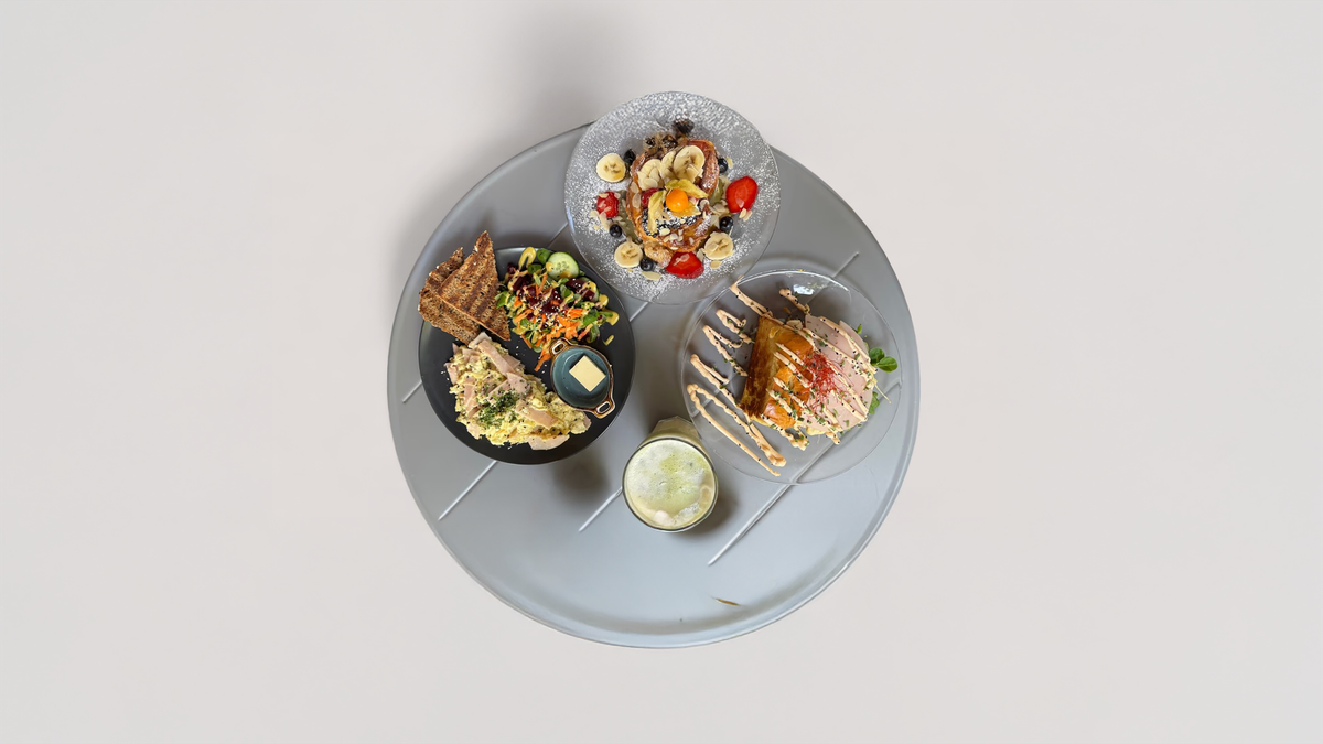 Brioche bread toasted with scrambled eggs & Siracha mayo