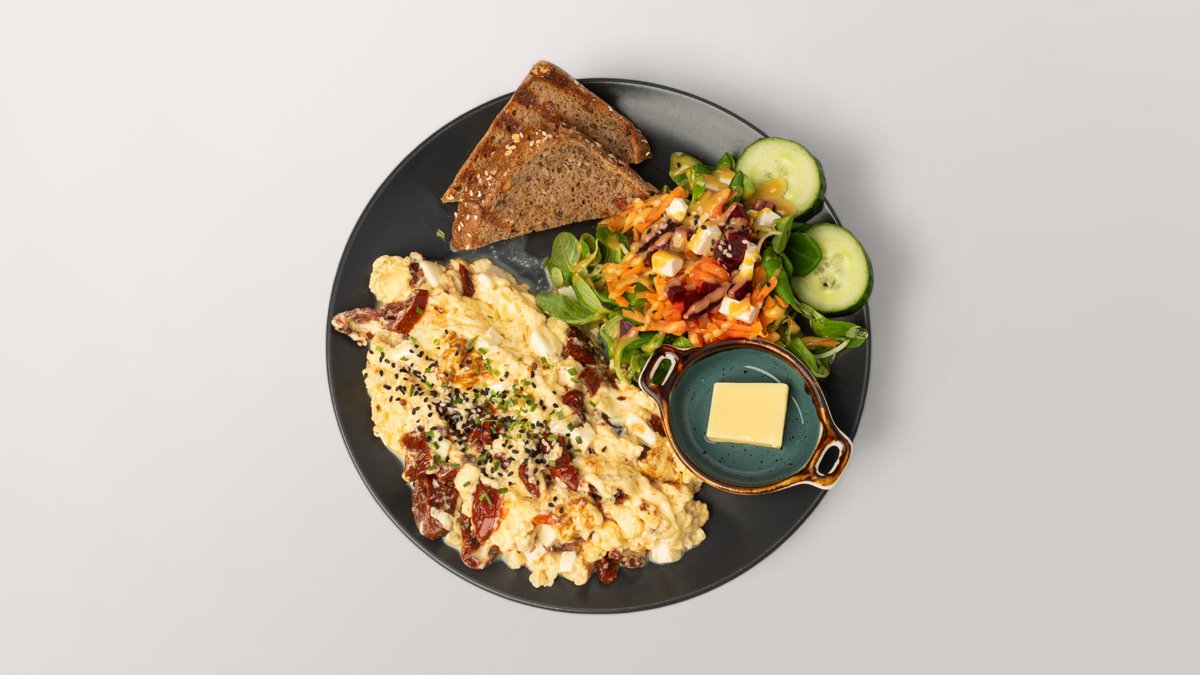 Scrambled eggs Dried Tomatoes and Feta Cheese