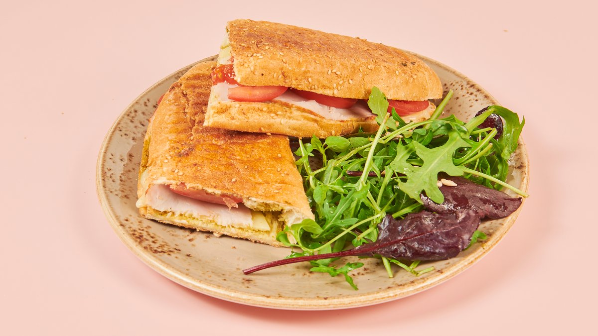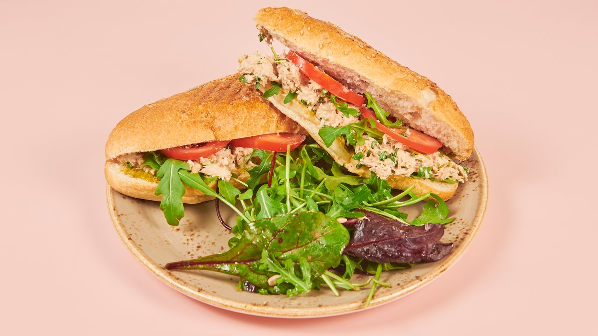 mit Thunfisch-Mix, frische Tomaten, Rucola und Basilikum-Pesto