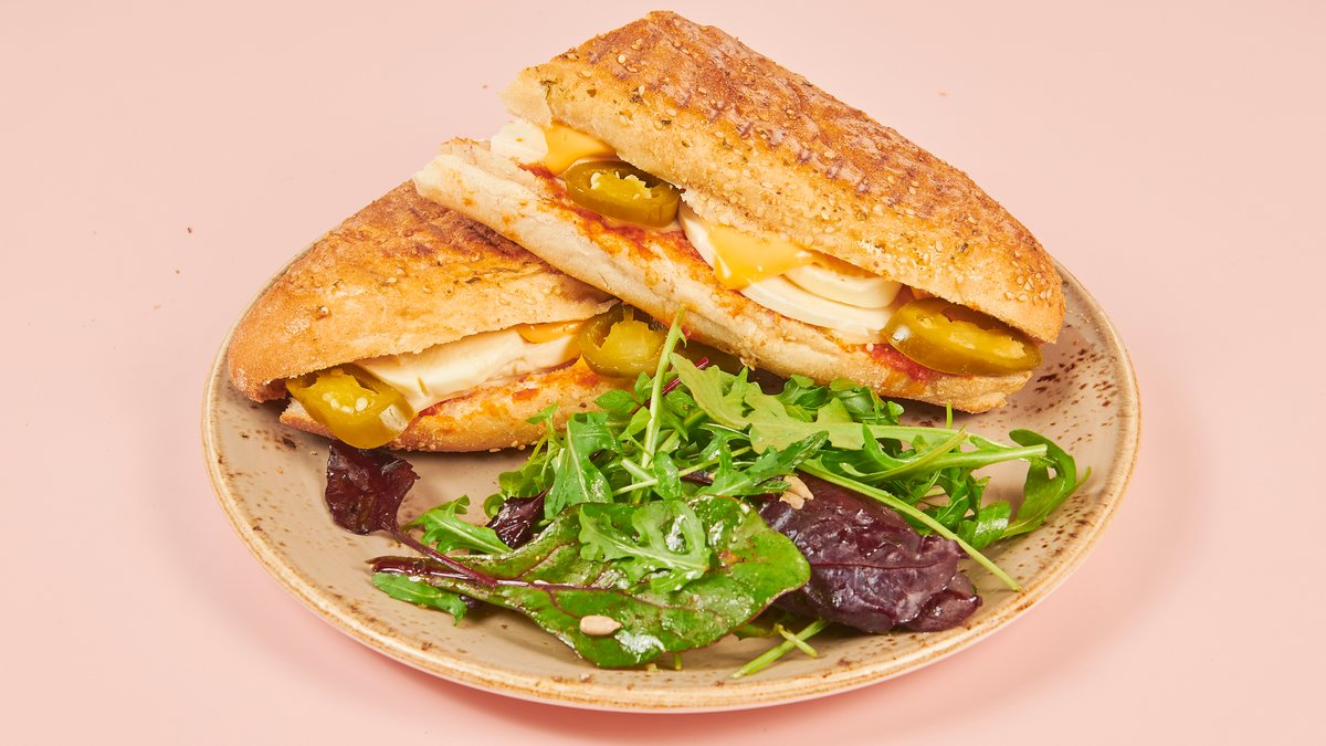 mit Feta, Mozzarella, Gouda, Cheddar, Jalapeños und hausgemachter Tomatencreme