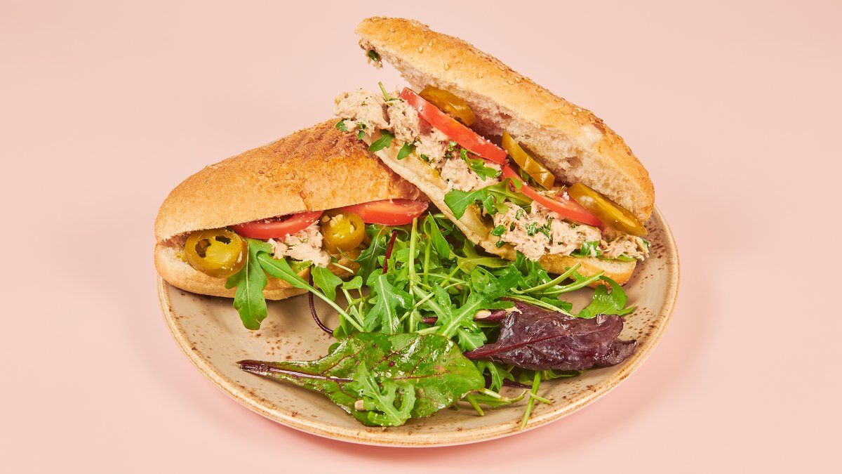 mit Thunfisch-Mix, frische Tomaten, Jalapeños und Basilikum Pesto