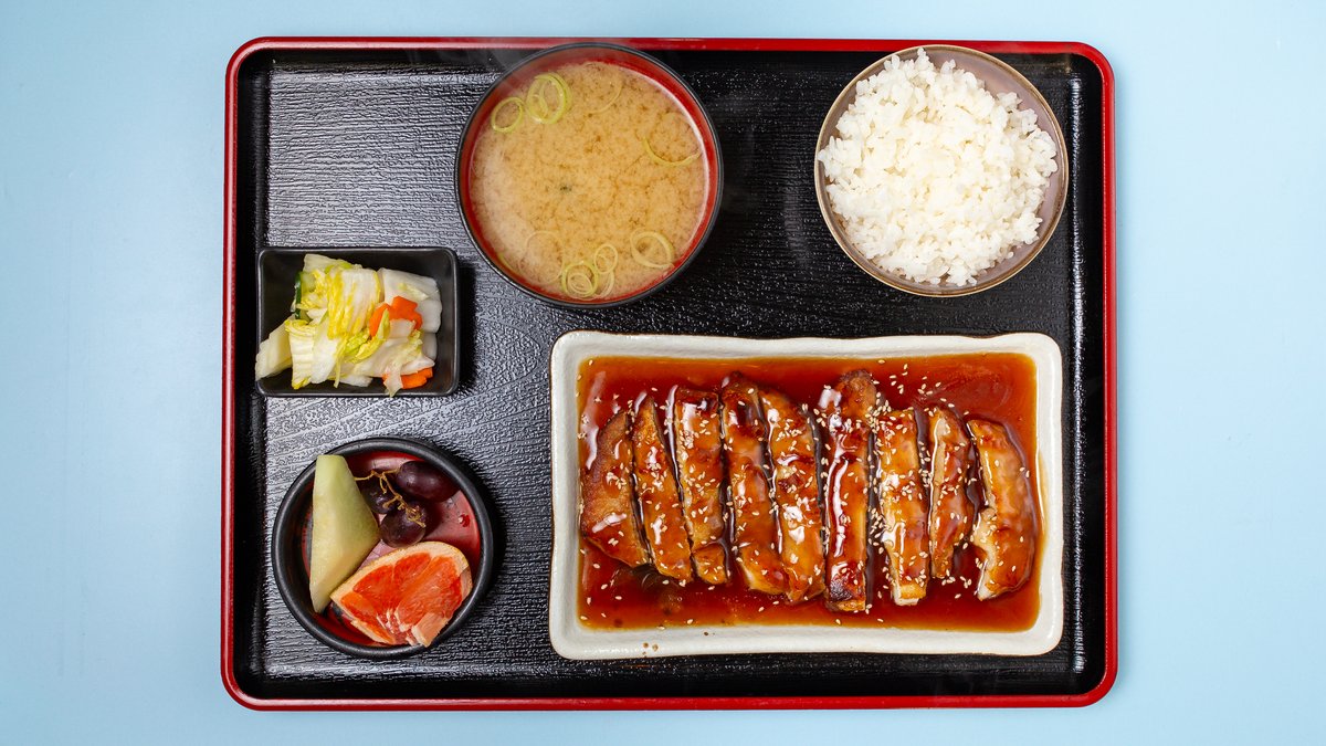 all dishes are served with rice, miso soup, oshinko and fresh fruits