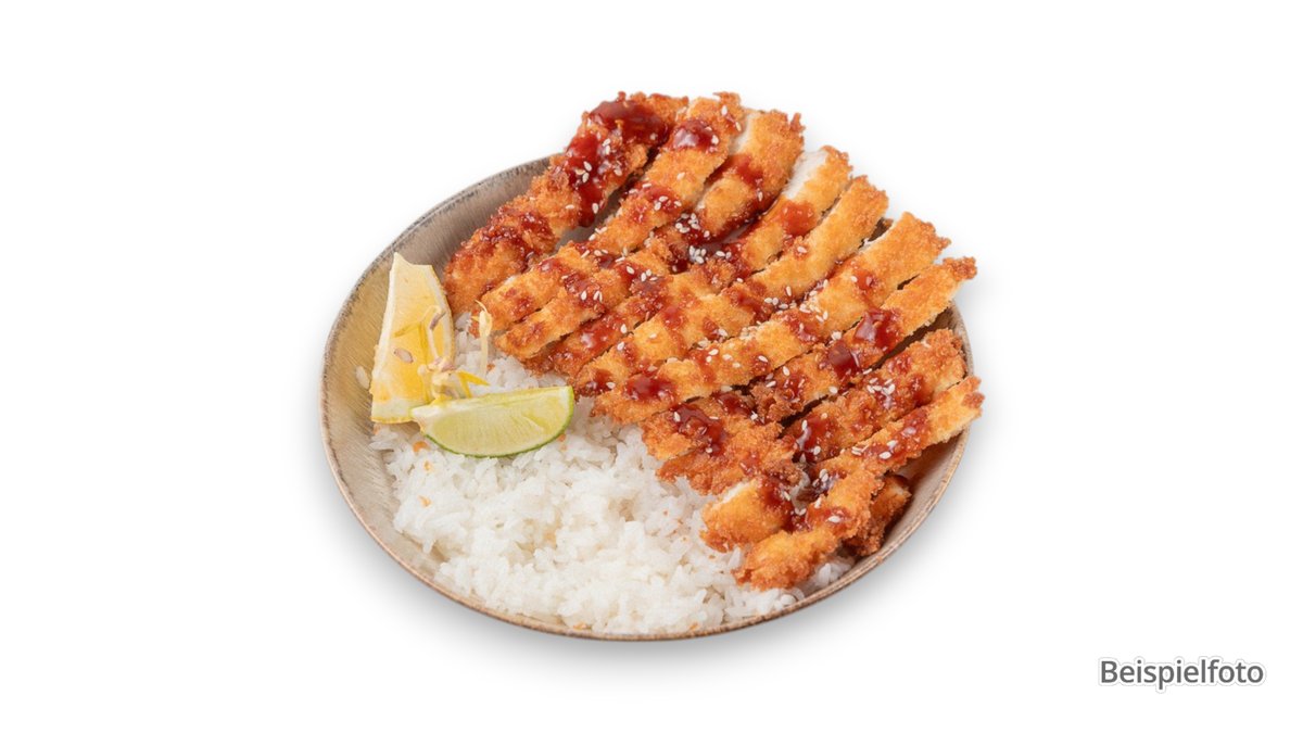 breaded chicken breast with special curry sauce, rice and coleslaw