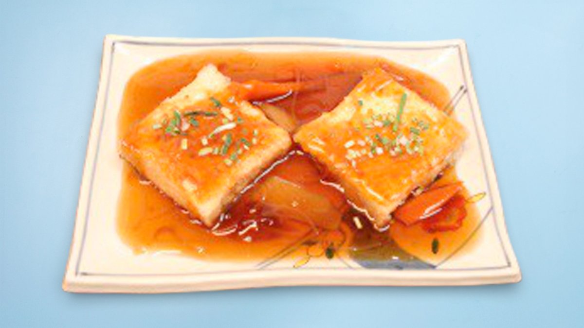 2 pieces of baked tofu with sweet special vegetable soy sauce