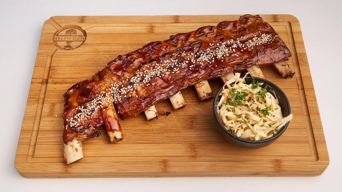 alle Gerichte sind zart gegrillte Rippchen mit Barbecuesoße und Coleslaw serviert