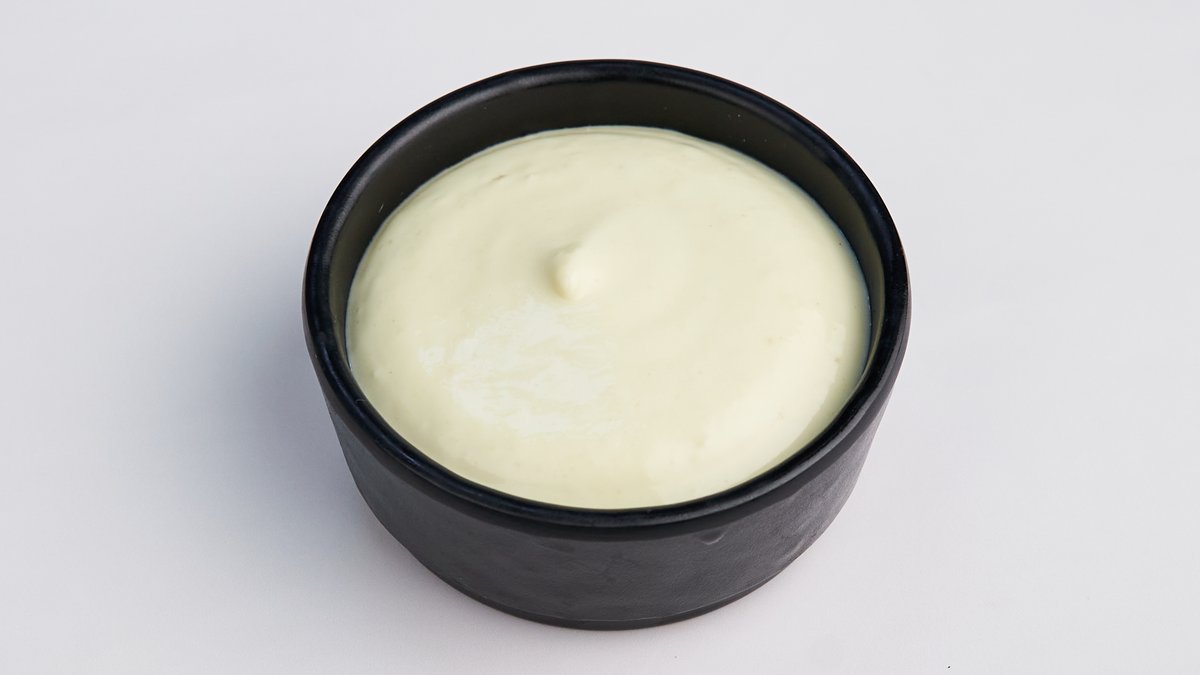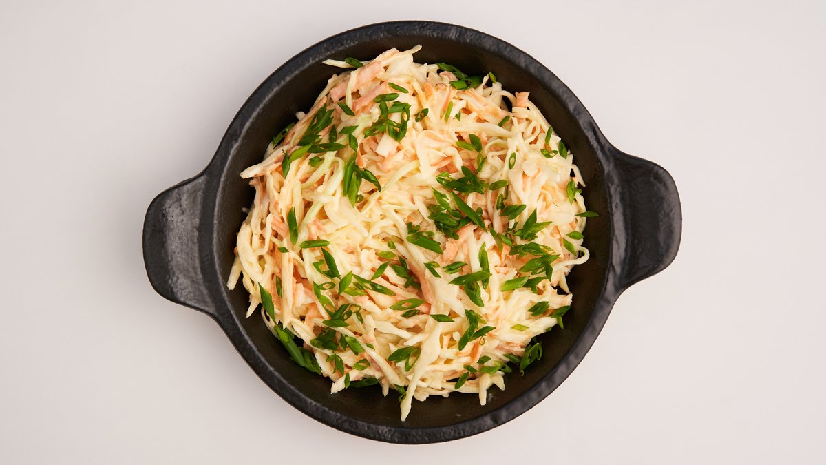 mit Crispy Garnelen, gemischter Salat, Tomaten, eingelegte Gurken und Wasabi-Mayonnaise