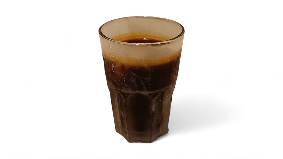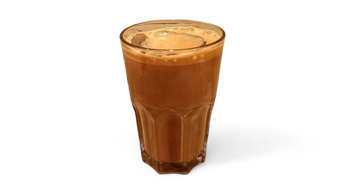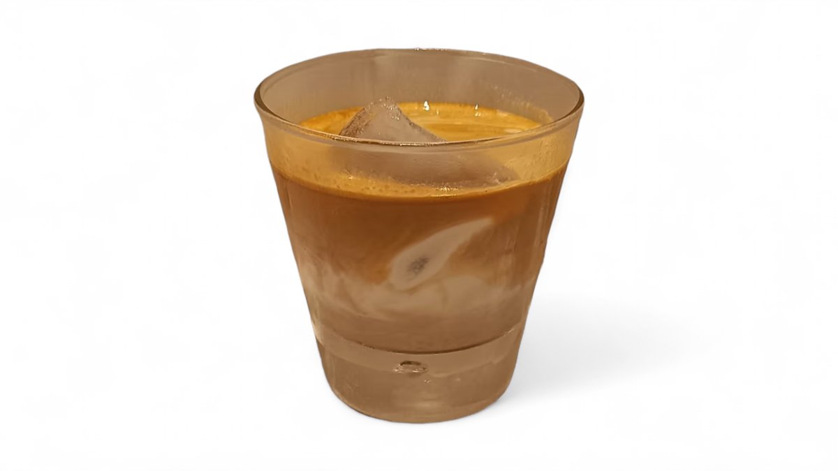 Ein gekühltes Kaffeegetränk mit einem starken Espressogeschmack und einer dünnen Schicht kalten Milchschaums.