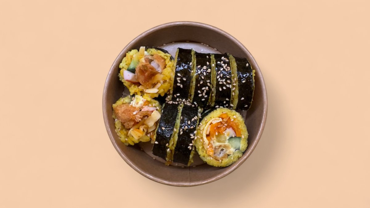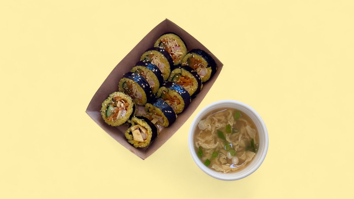 Kurkuma Reis Gimbap & Egg Soup Combo