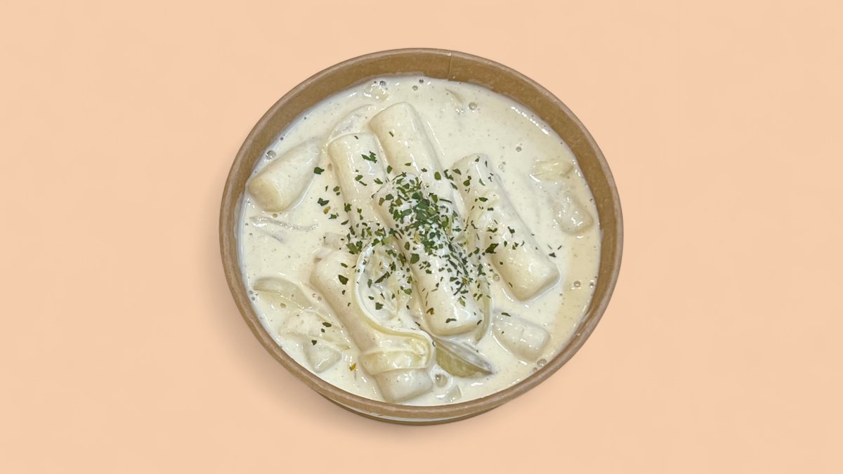 spicy soft, elastic rice cakes with a mild, creamy, and spicy gochujang sauce