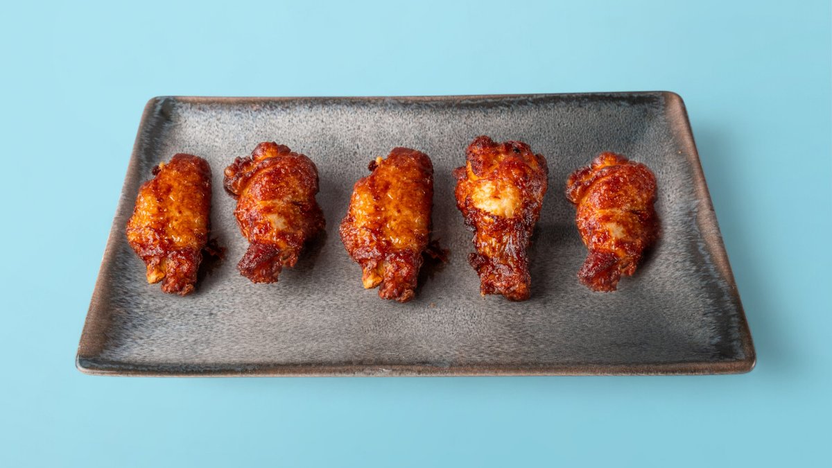 mit Korean BBQ-Sauce, knusprigem Bacon, würzigen Gewürzgurken, knackig frische Zwiebeln und frischem Feldsalat