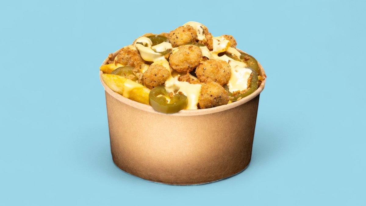 with French fries, chicken, fried onions, jalapeños, chili cheese sauce and joppie sauce