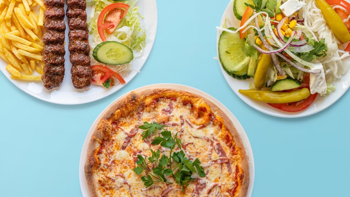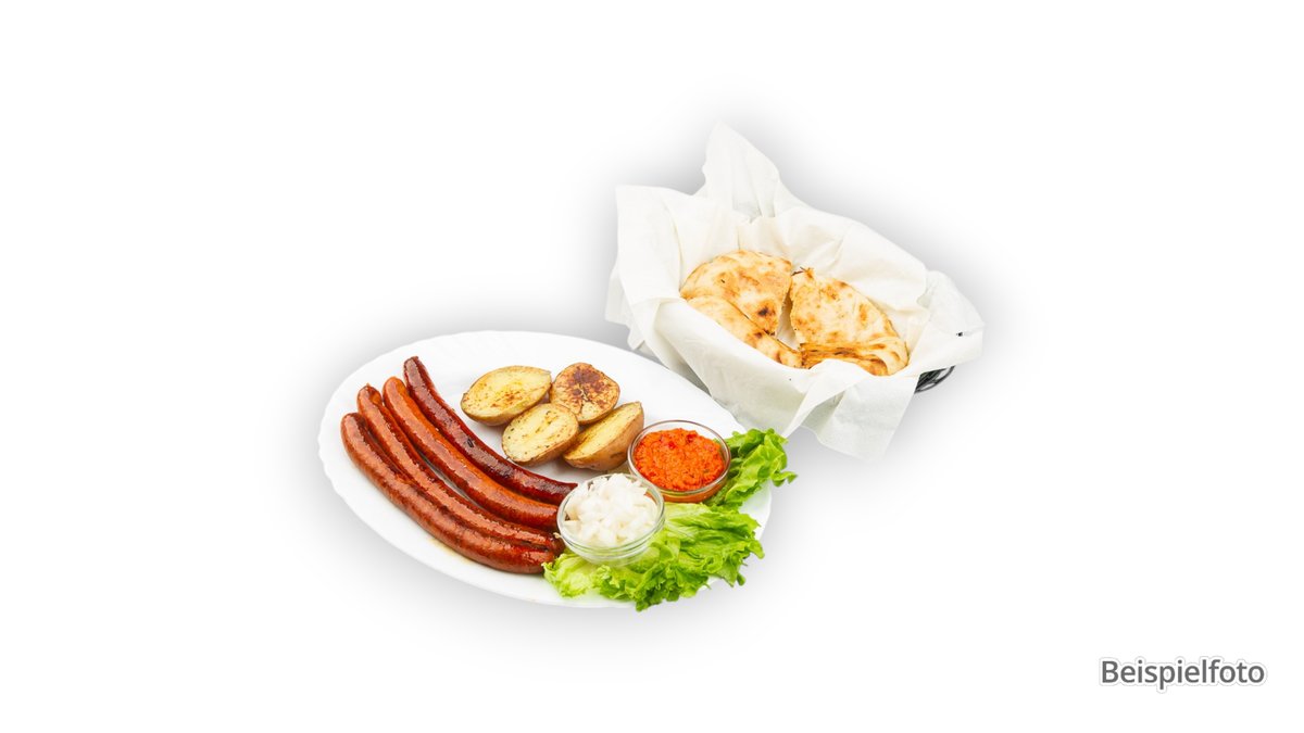 with 5 different types of meat from veal, chicken and lamb and Turkish beef sucuk sausage