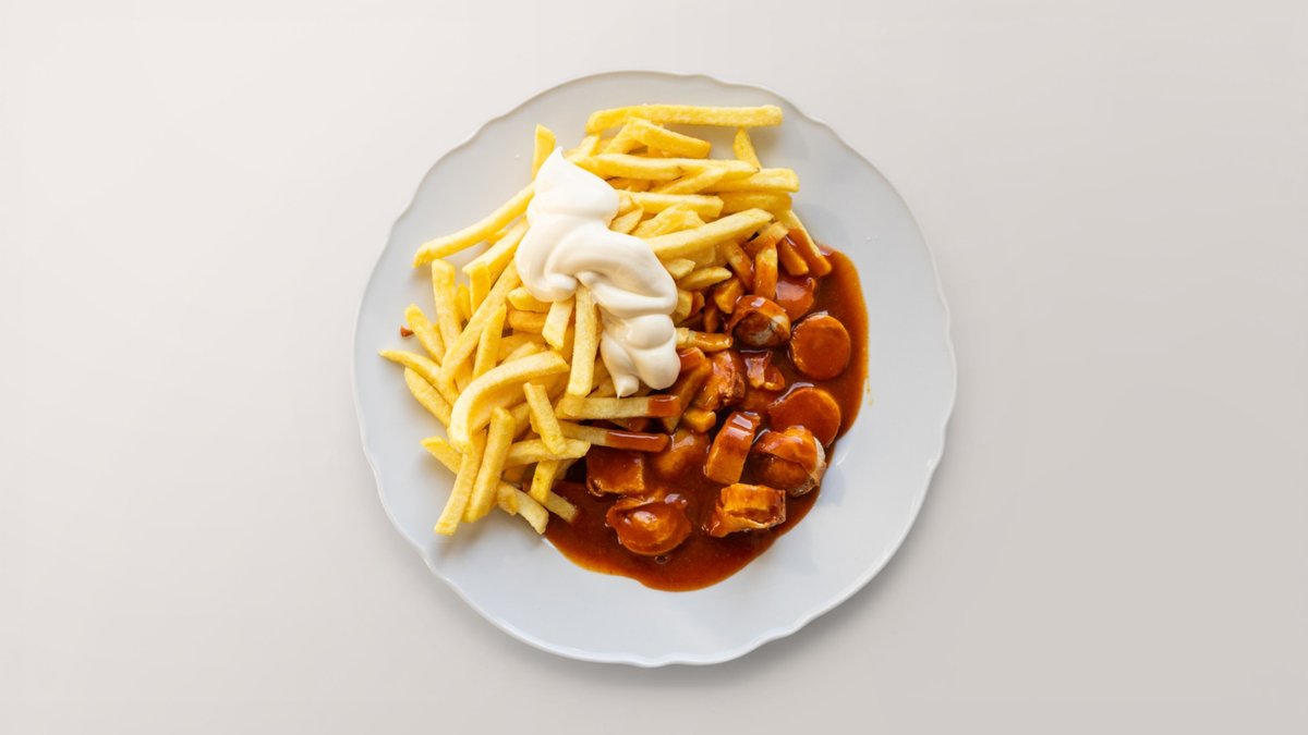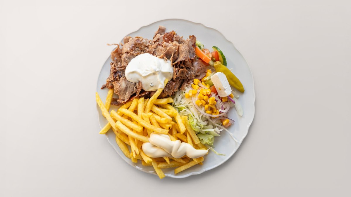 with döner, currywurst, curry meatball, fries and mayonnaise