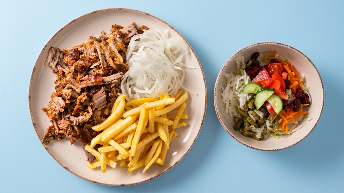 with gyros, currywurst and French fries