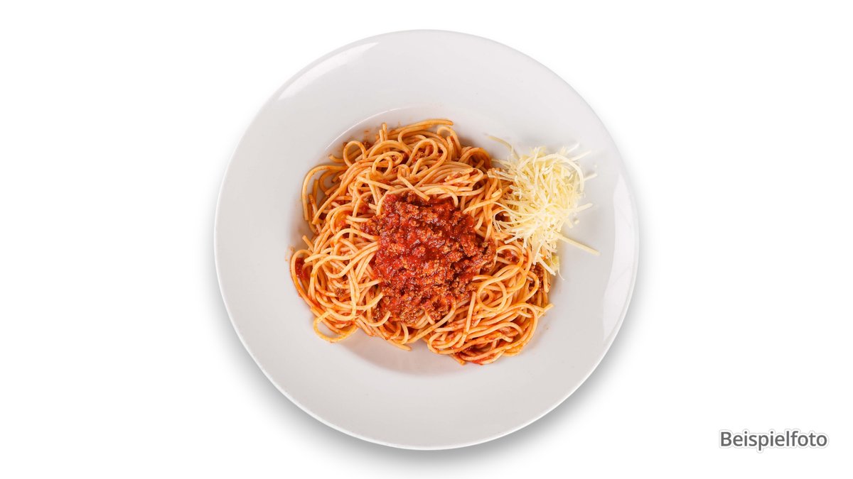 Nudeln mit klassischer Bolognesesoße vom Rind und frisch geriebenem Parmesan