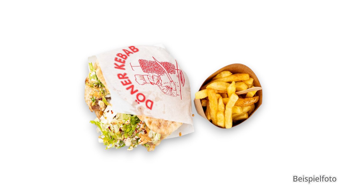 Döner with your choice of meat, currywurst, fries, salad and sauces