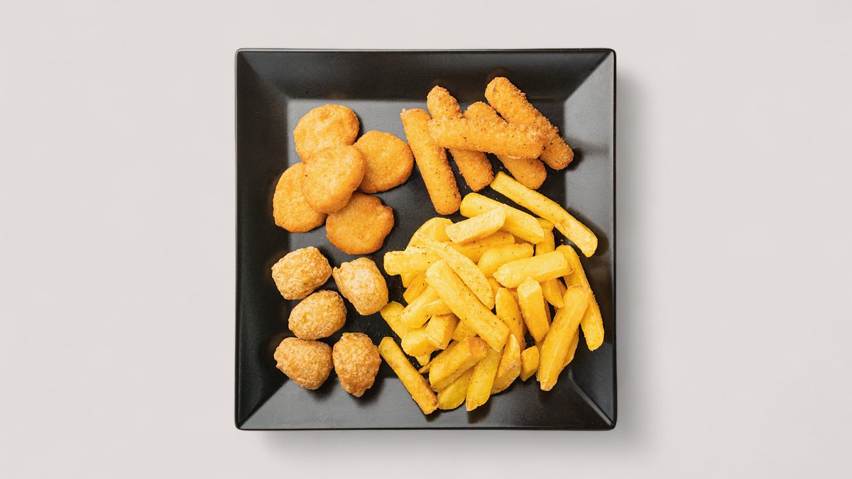 mit 5 Mozzarella Sticks, Chili-Cheese-Nuggets, Chicken Nuggets und Pommes frites