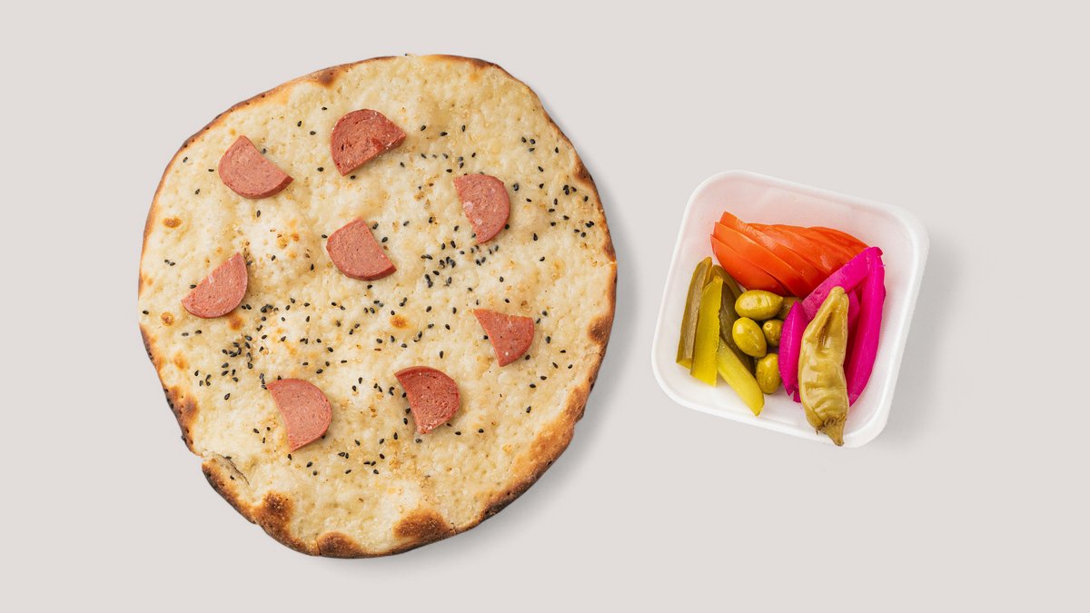 mit Sucuk vom Rind, Käse, Sesam, Schwarzkümmel und Gemüse