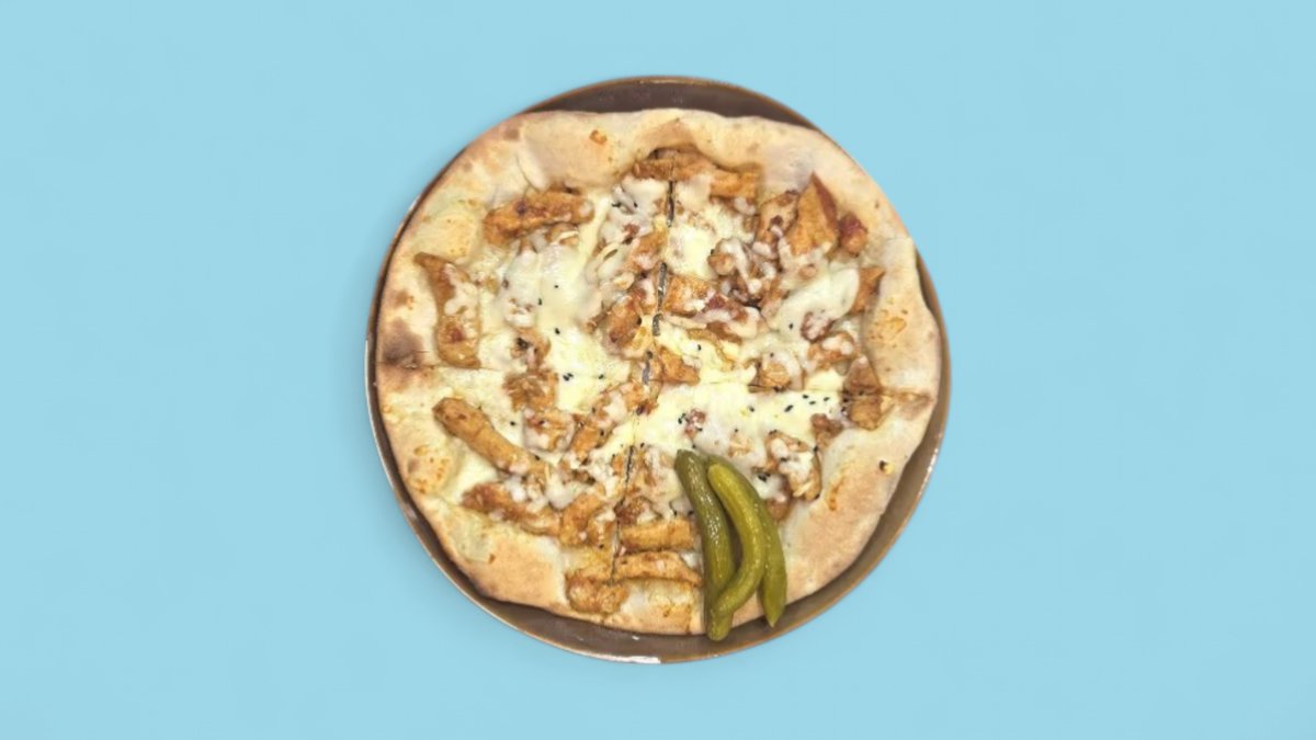 with chicken breast, hummus, tomatoes, iceberg lettuce, and pickles