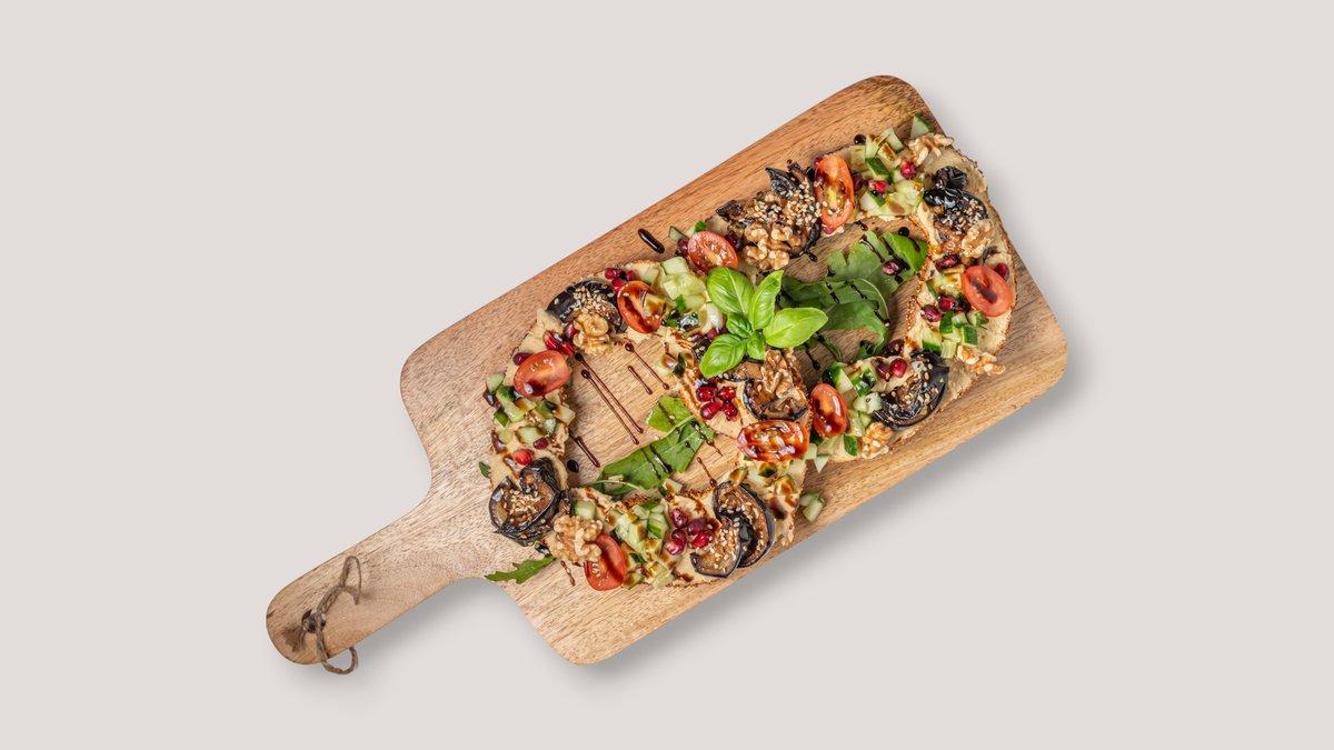 mit hausgemachtem Pesto, Tomaten, Parmesan und Basilikum