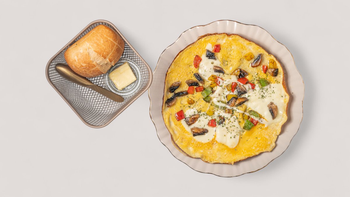 mit Tomaten, Paprika, Zwiebeln, Eiern und Chilischoten