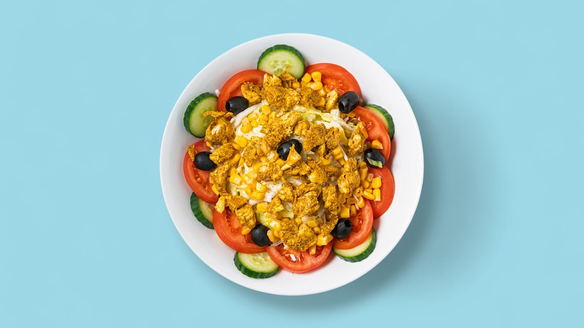 all salads are prepared with iceberg lettuce, tomatoes, cucumbers and a dressing of your choice