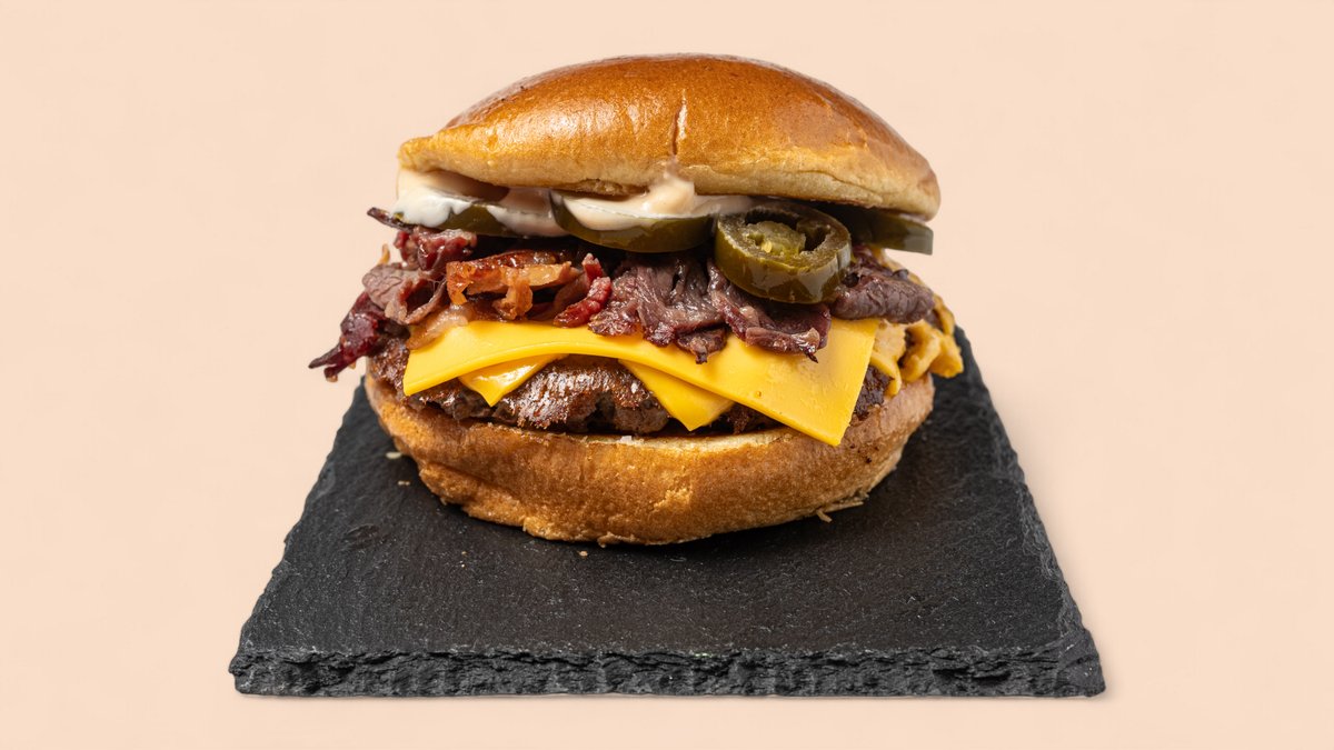 mit Emmentaler-Käse, gerillten Jalapeños, gerillten Zwiebeln und hausgemachter Süßzwiebel-Soße