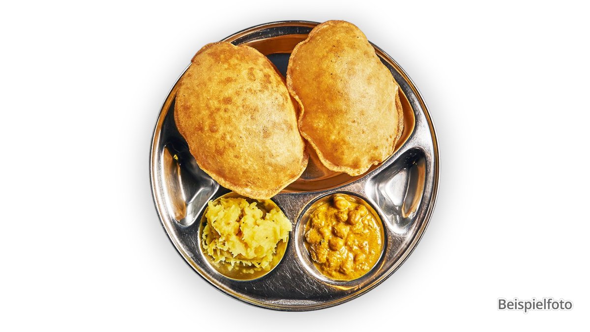 7 pieces dough balls made from durum wheat semolina with a mixture of potatoes, chickpeas, mint-coriander water, and tamarind chutney