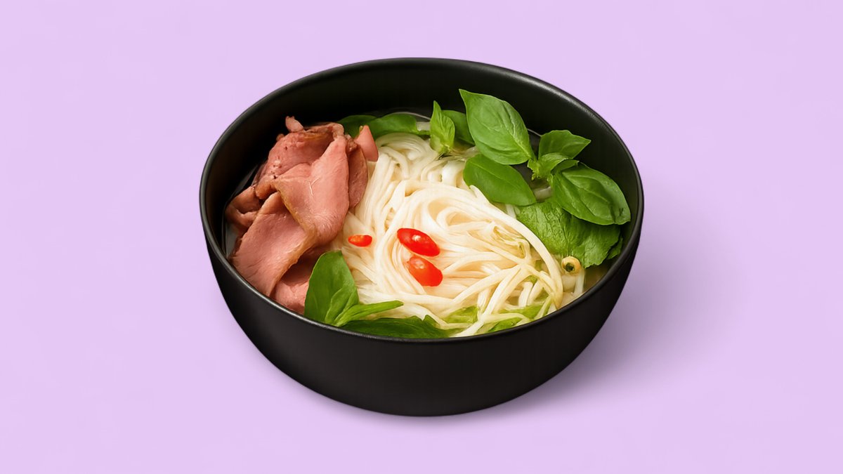 traditional Vietnamese soup with strong chicken broth, rice noodles, bean sprouts, spring onions, fresh herbs and an ingredient of your choice