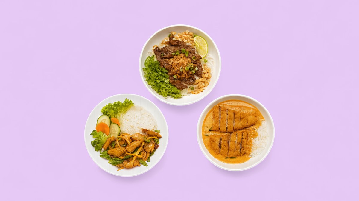all dishes are prepared with an ingredient of your choice (“16. Bun Bo Nam Bo” and “17. Ga Sa Ot Lemongrass Chili Chicken” are prepared without an ingredient of your choice)