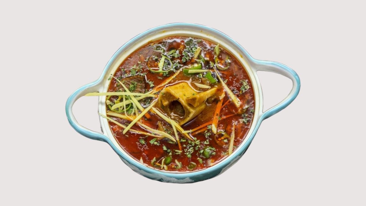 selbstgemachte, bangladeschische Masala Hähnchenbrühe mit weißem Reispolao