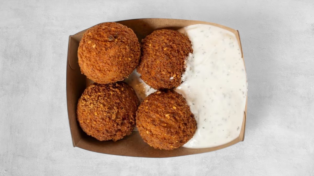Kisir (türkischer Bulgursalat), American Salad, Eisbergsalat, Rotkohlsalat, Oliven, Ezme (türkische scharfe Paste) & Soße deiner Wahl