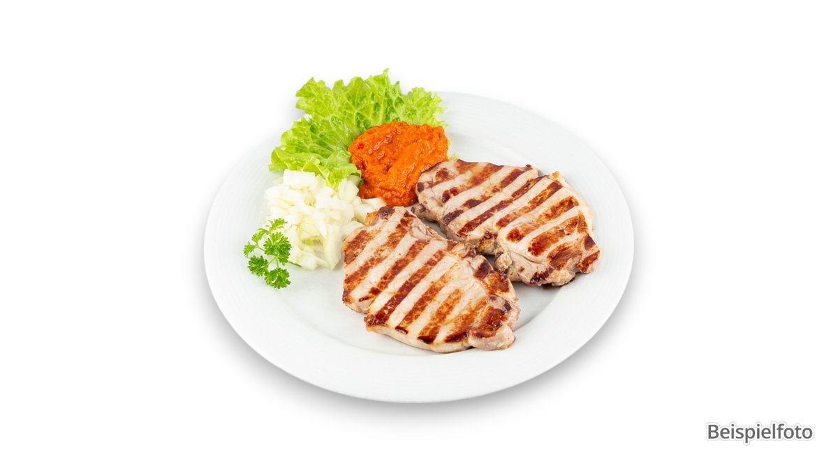 minced pork and beef steak with feta cheese, salad and a side dish of your choice