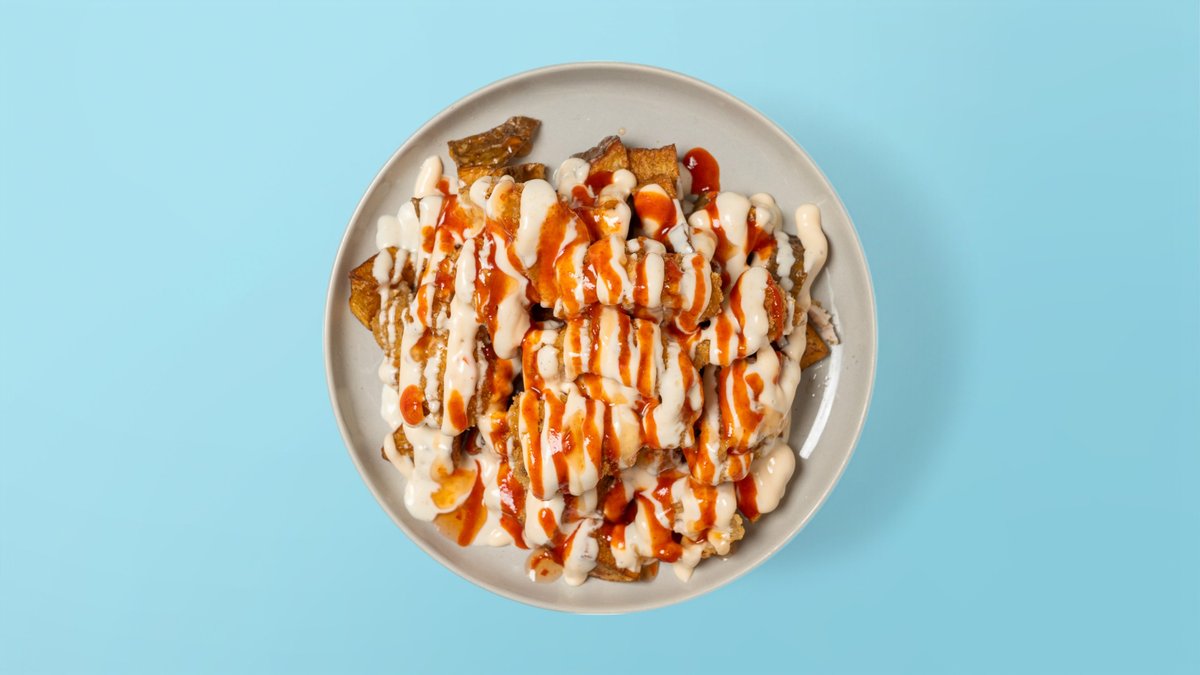 Loaded Potato Cubes with Fried Chicken