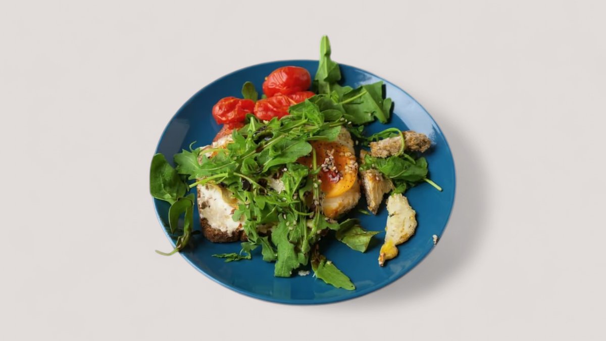 roasted eggplant on bread with fresh herbs and tomatoes