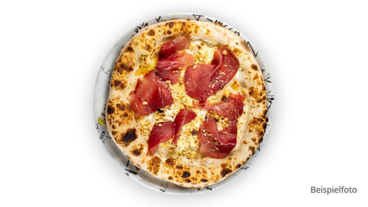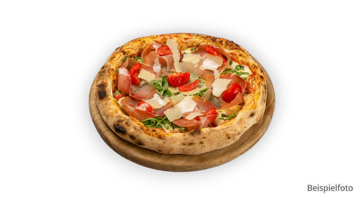 alle Pizzen sind ca. Ø 32 cm groß und werden mit Tomatensoße und Mozzarella zubereitet („Pizza Tartufo” und „Pizza Capra” werden ohne Tomatensoße zubereitet; „Pizza Avocado” wird ohne Mozzarella zubereitet)
