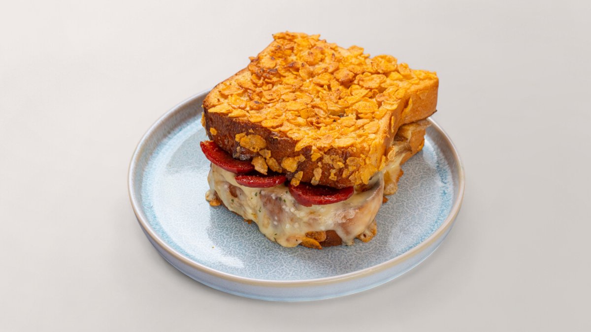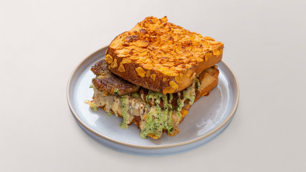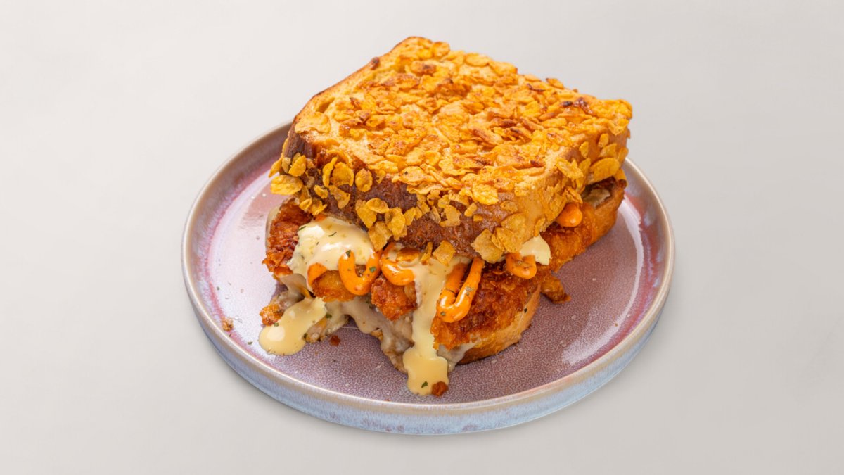 Kastenweißbrot mit Eimasse und ungesüßten Cornflakes