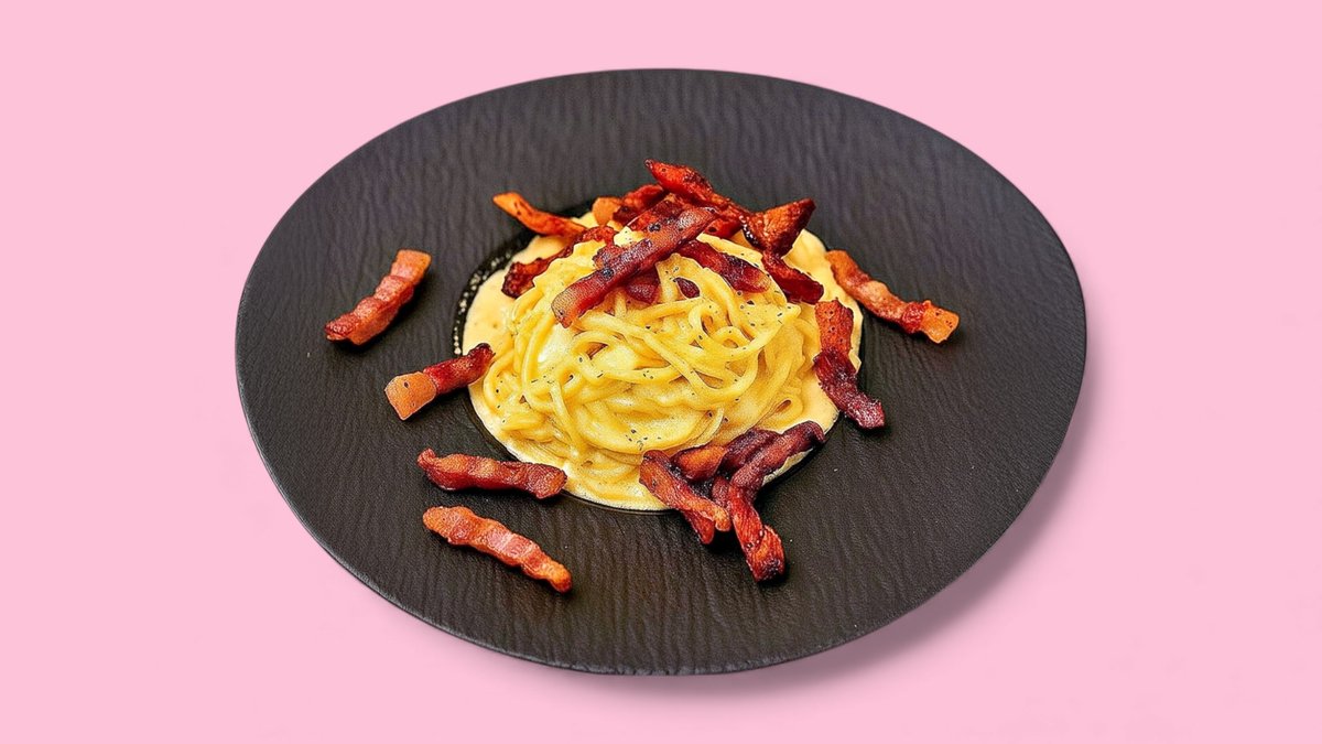 Linguine with pork guanciale, egg yolk, Parmesan and Pecorino
