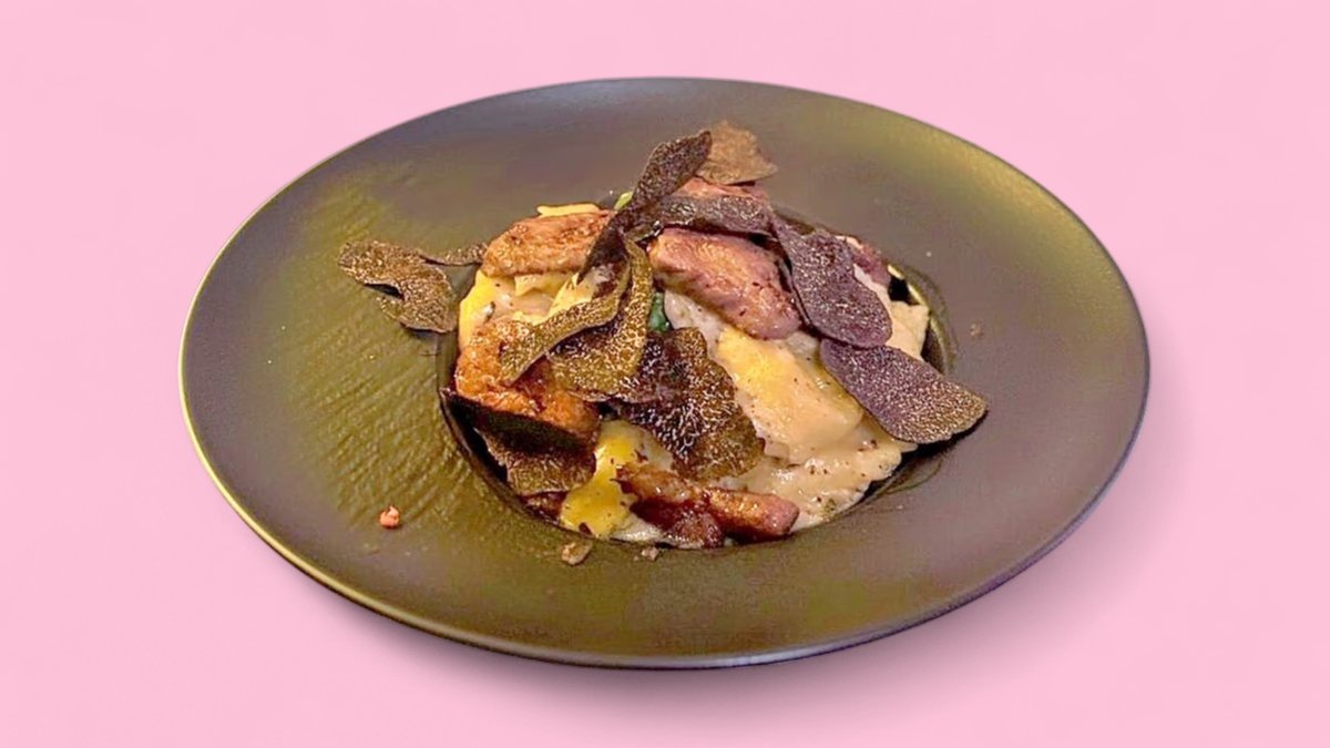 with truffle parmesan cream, pork salsiccia and fresh truffle