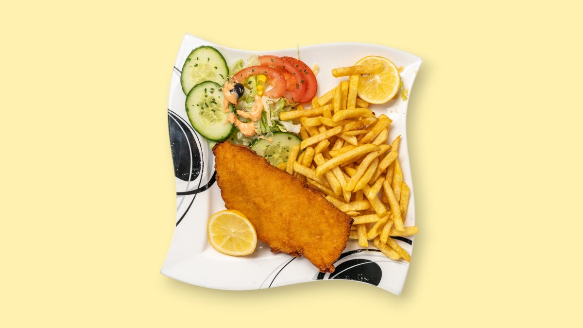 breaded, with salad