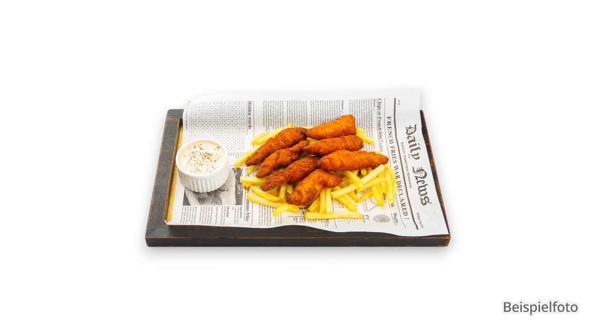 approx. 180g, breaded with French fries