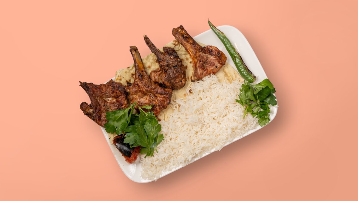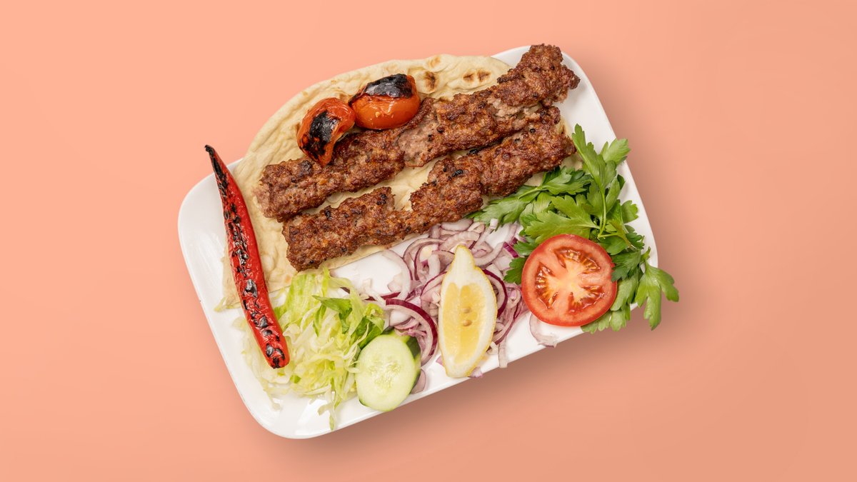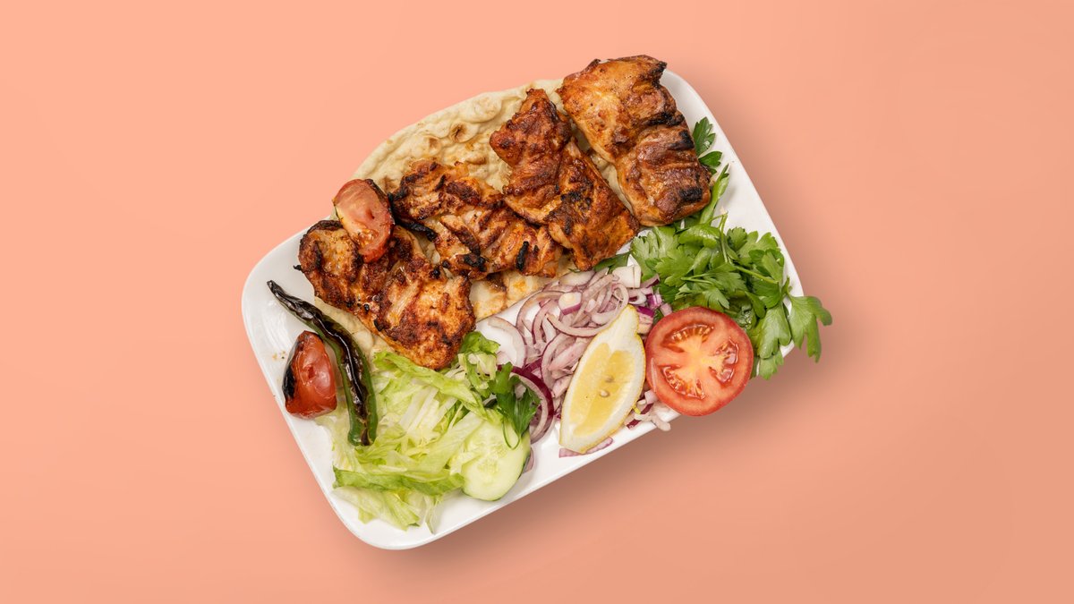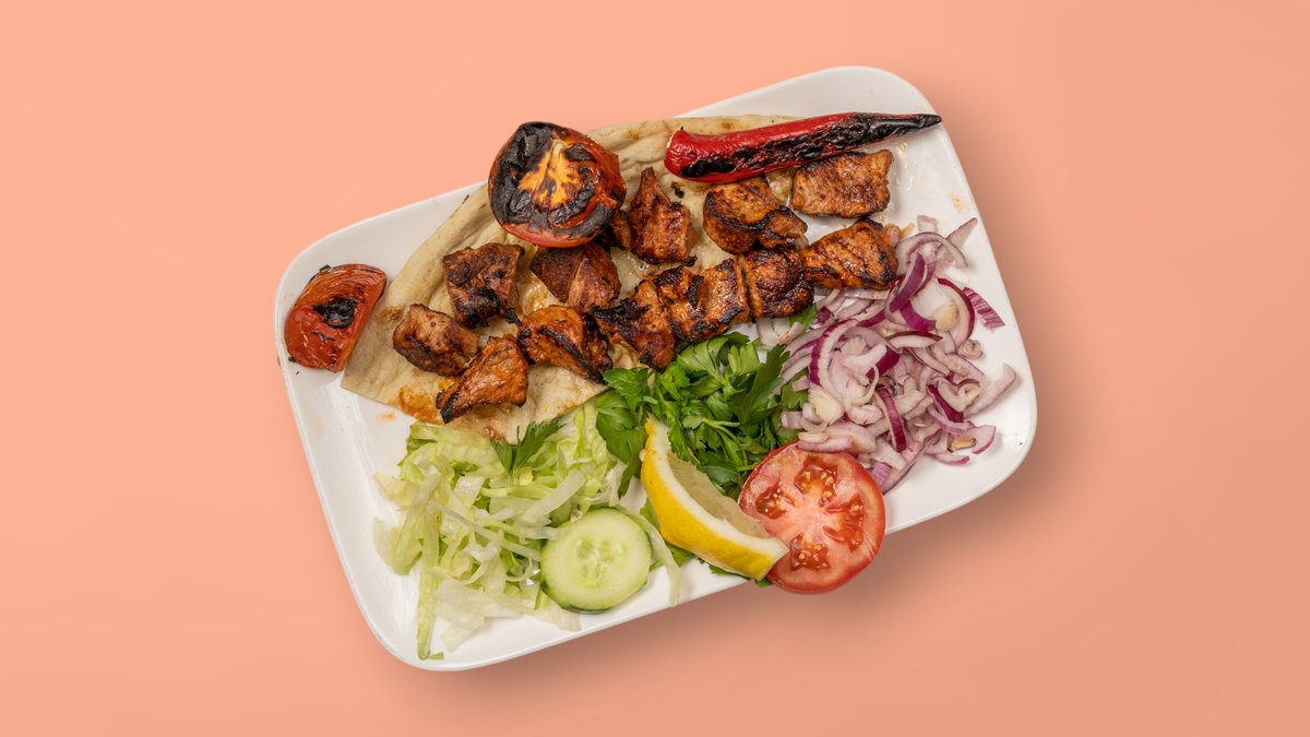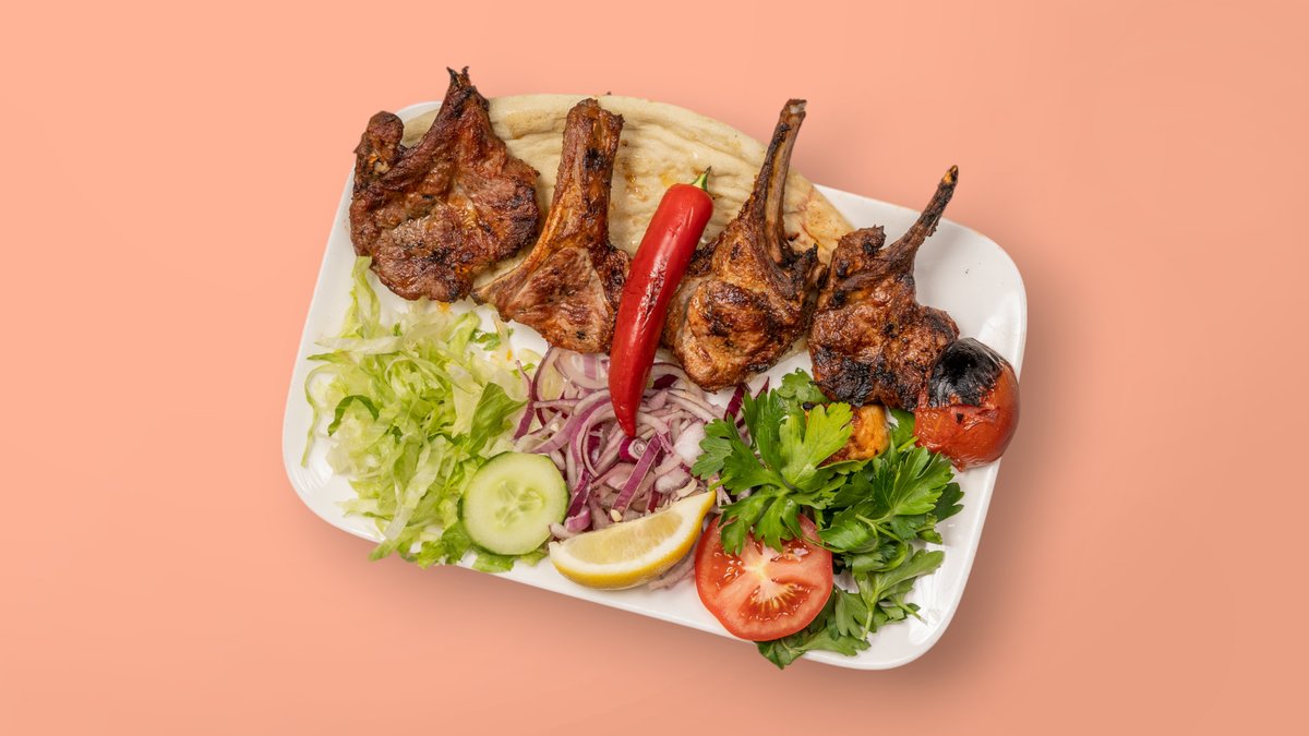 1x Hackfleischspieß vom Lamm 1x Lammspieß 1x Hähnchenspieß 2x Lammkoteletts 1x Hähnchenkeule mit gegrillten Tomaten, Peperoni und einer Beilage deiner Wahl