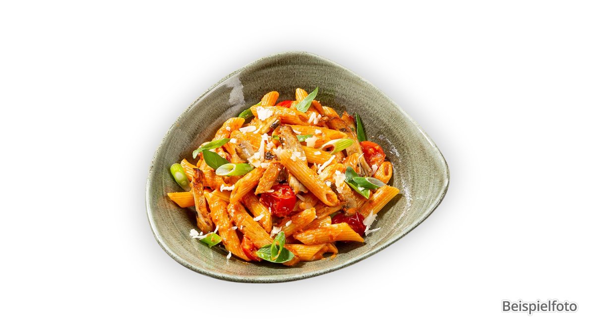 mit Hähnchenbruststreifen, Paprika, Brokkoli, Kirschtomaten und leichter Tomaten-Sahnesoße