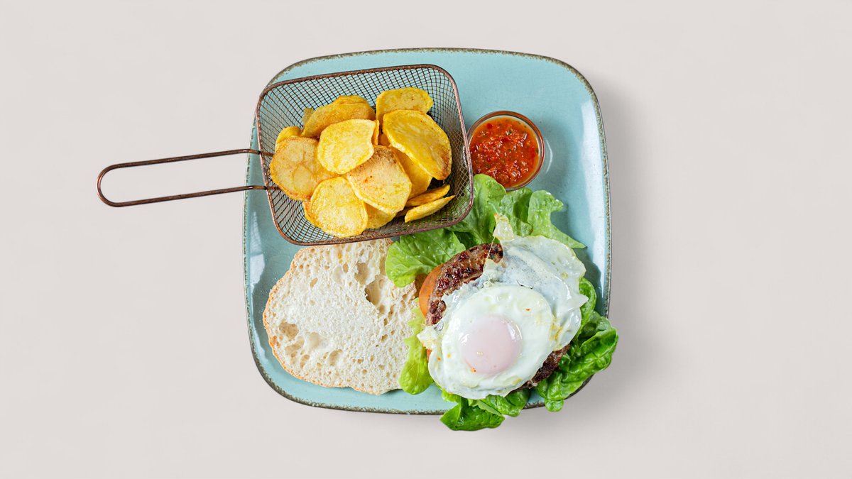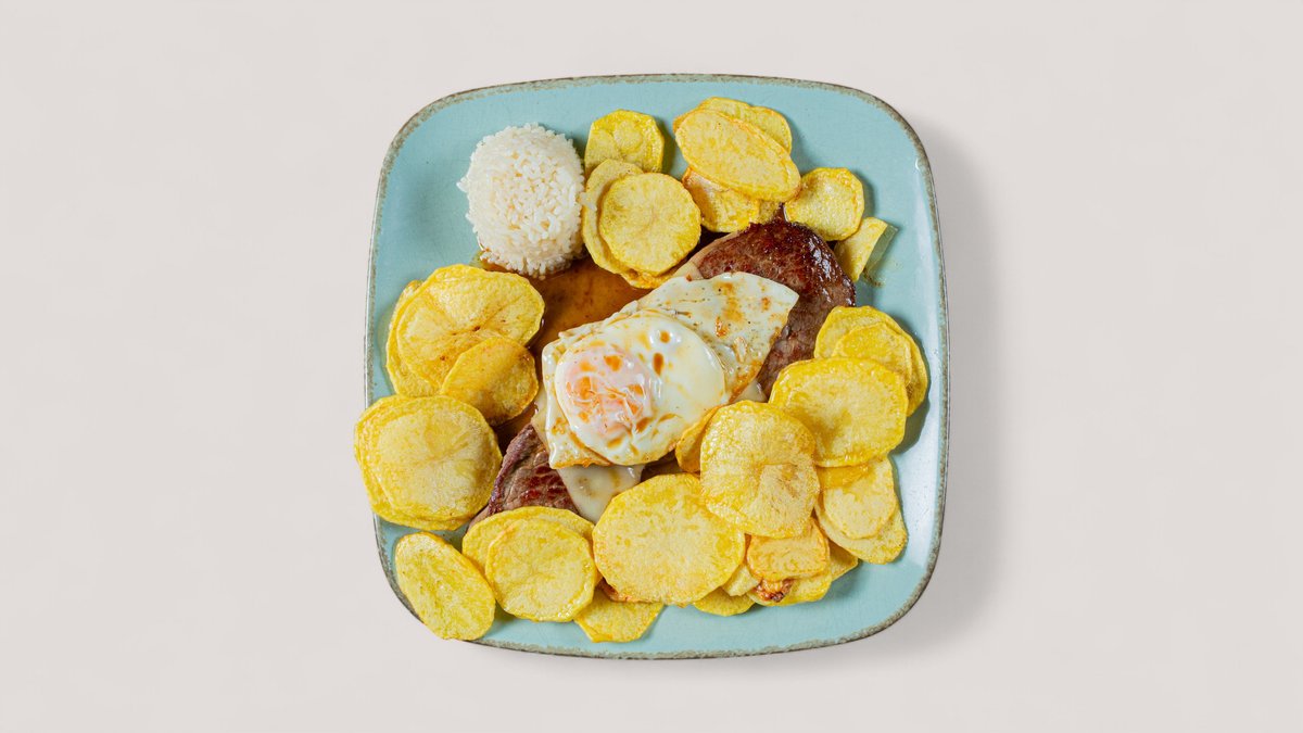 kleines gegrilltes Hüftsteak mit hausgemachten Kartoffelchips