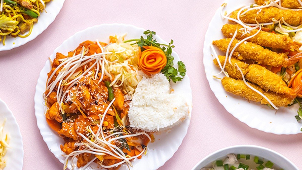 all dishes are served with fried vegetables, rice and a sauce of your choice