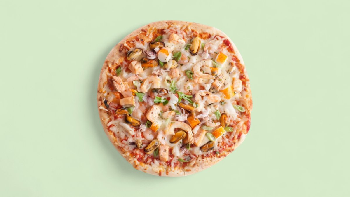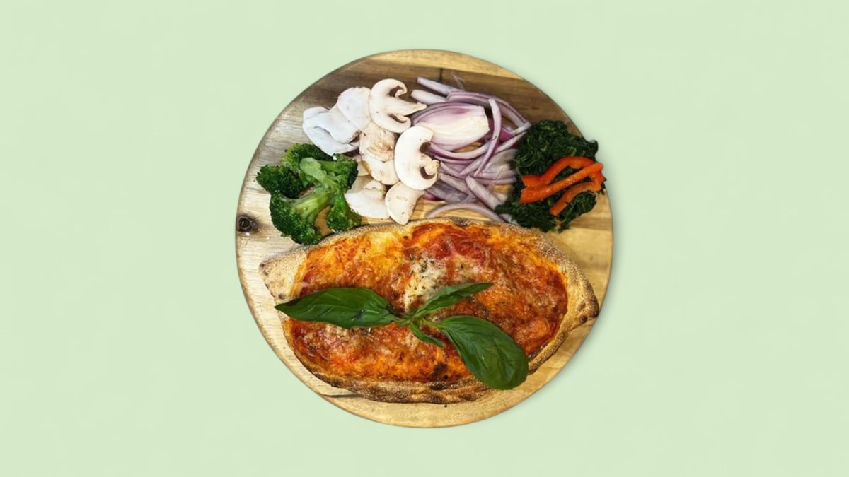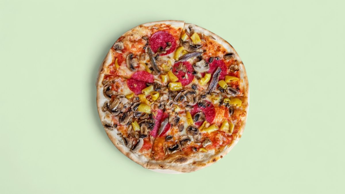 alle Pizzen werden mit Tomatensoße, Oregano und Käse zubereitet und in einer Größe deiner Wahl serviert
