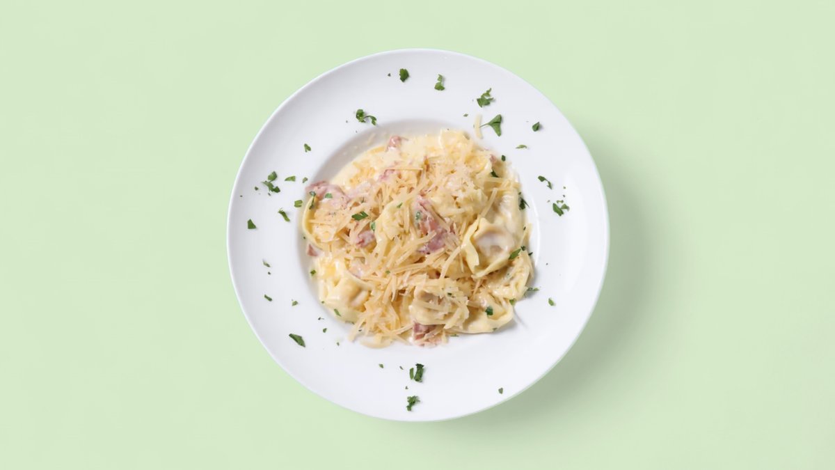 frische Tortellini gefüllt mit Ricotta, Spinat und Parmesan in Sahnesoße