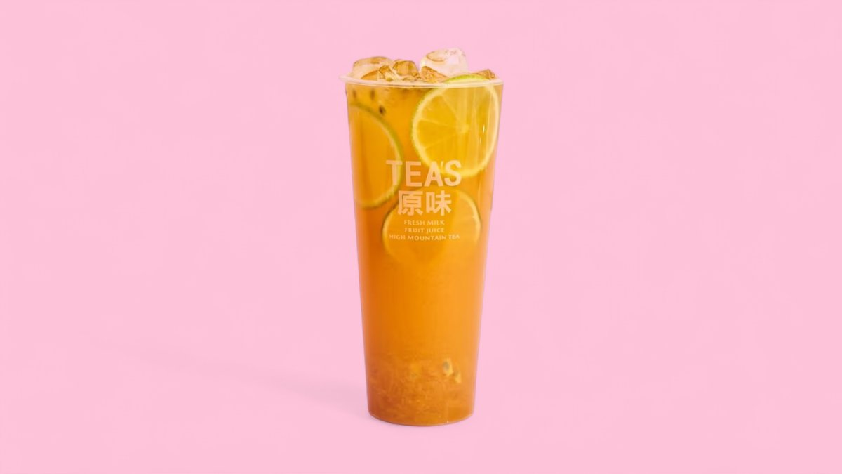 mit Jasmin Grüntee, gekühltem Passionfrucht Püree, Limettensaft und Limetten Scheiben